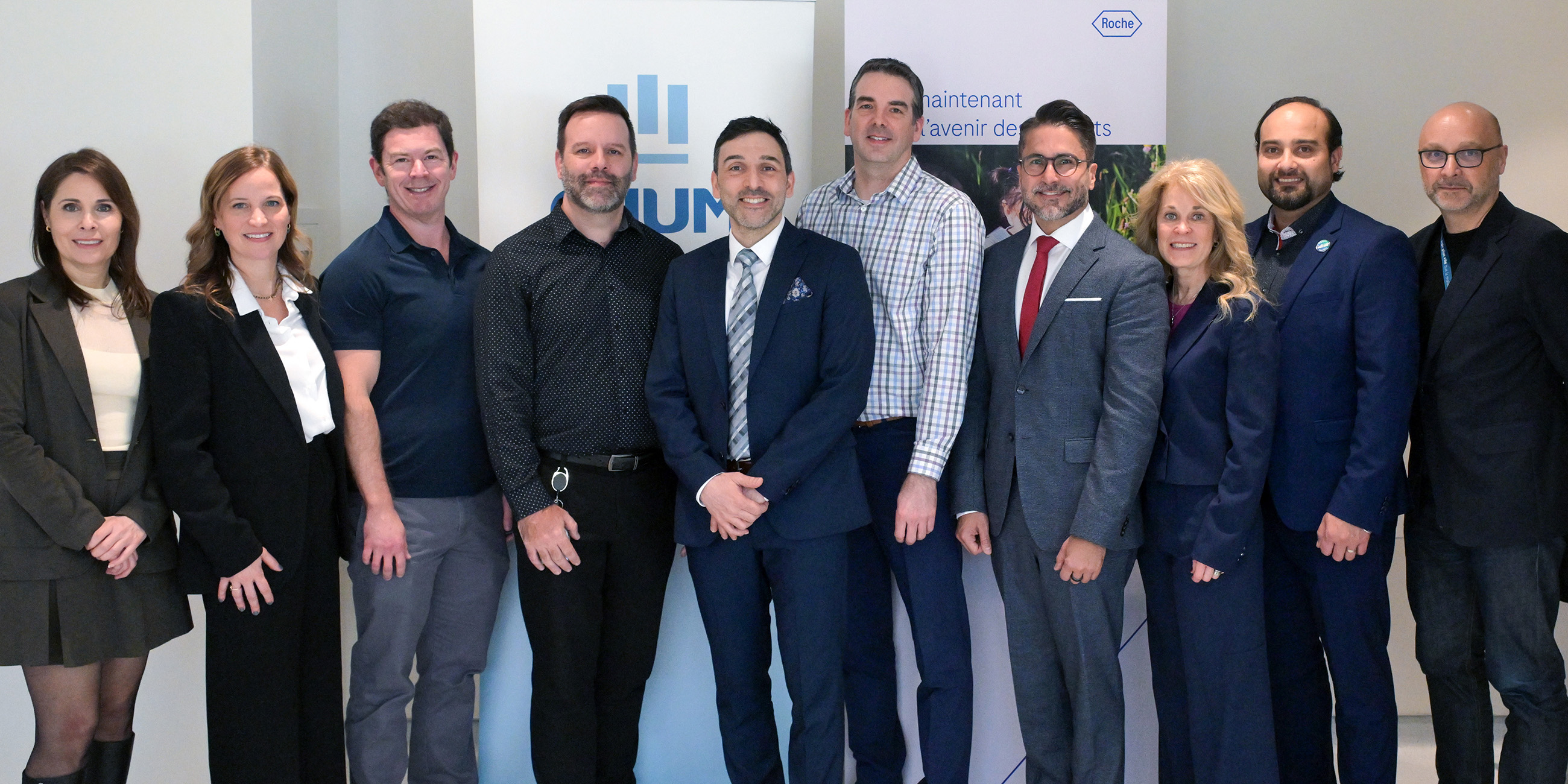 Le lancement du projet s’est tenu au CHUM en présence de Bruno Lamontage, Directeur clinico-administratif de la Grappe OPTILAB Montréal-CHUM, et de Matheus Vieira, président-directeur général de Roche Diagnostics Canada, ainsi que de membres des équipes scientifiques et cliniques impliquées.